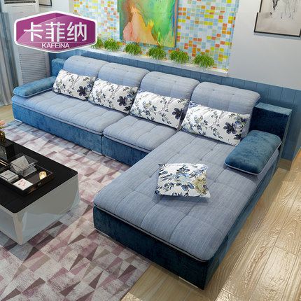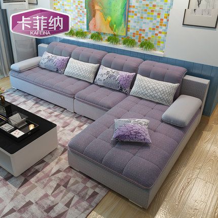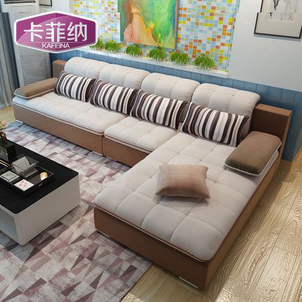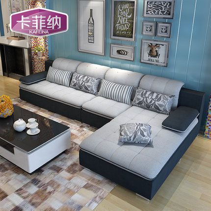 卡菲纳简约现代布艺沙发大小户型客厅家具转角L型可拆洗组合沙发