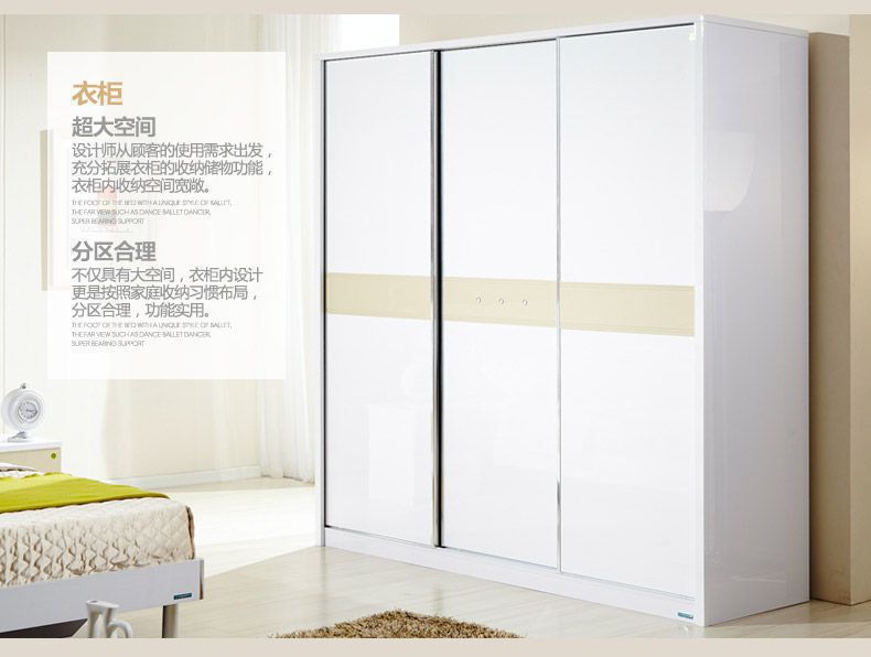 全友家居衣柜现代简约推拉门三门衣橱环保木质板式大101033
