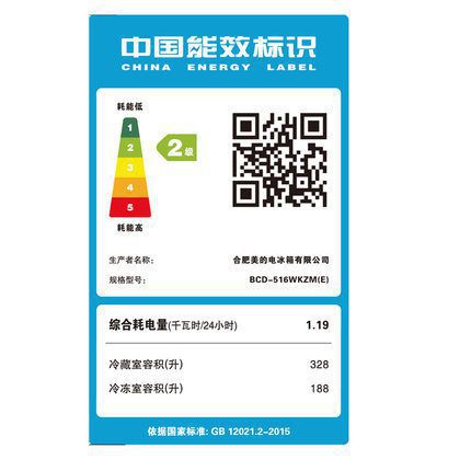 Midea/美的 BCD-516WKZM(E)对开门电冰箱/双门智能风冷无霜冰箱